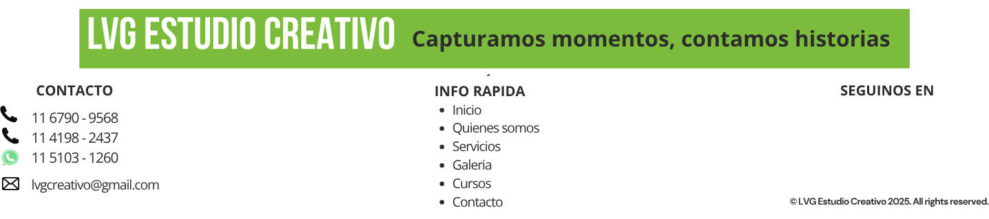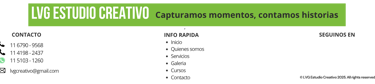 ¡Bienvenidos a LVG Estudio Creativo! Somos un equipo de apasionados por la fotografía, el video y todo lo que implique capturar la esencia de cada momento. Con más de 17 años de experiencia, creatividad sin límites y un buen mate siempre a mano, transformamos cada instante en un recuerdo épico.